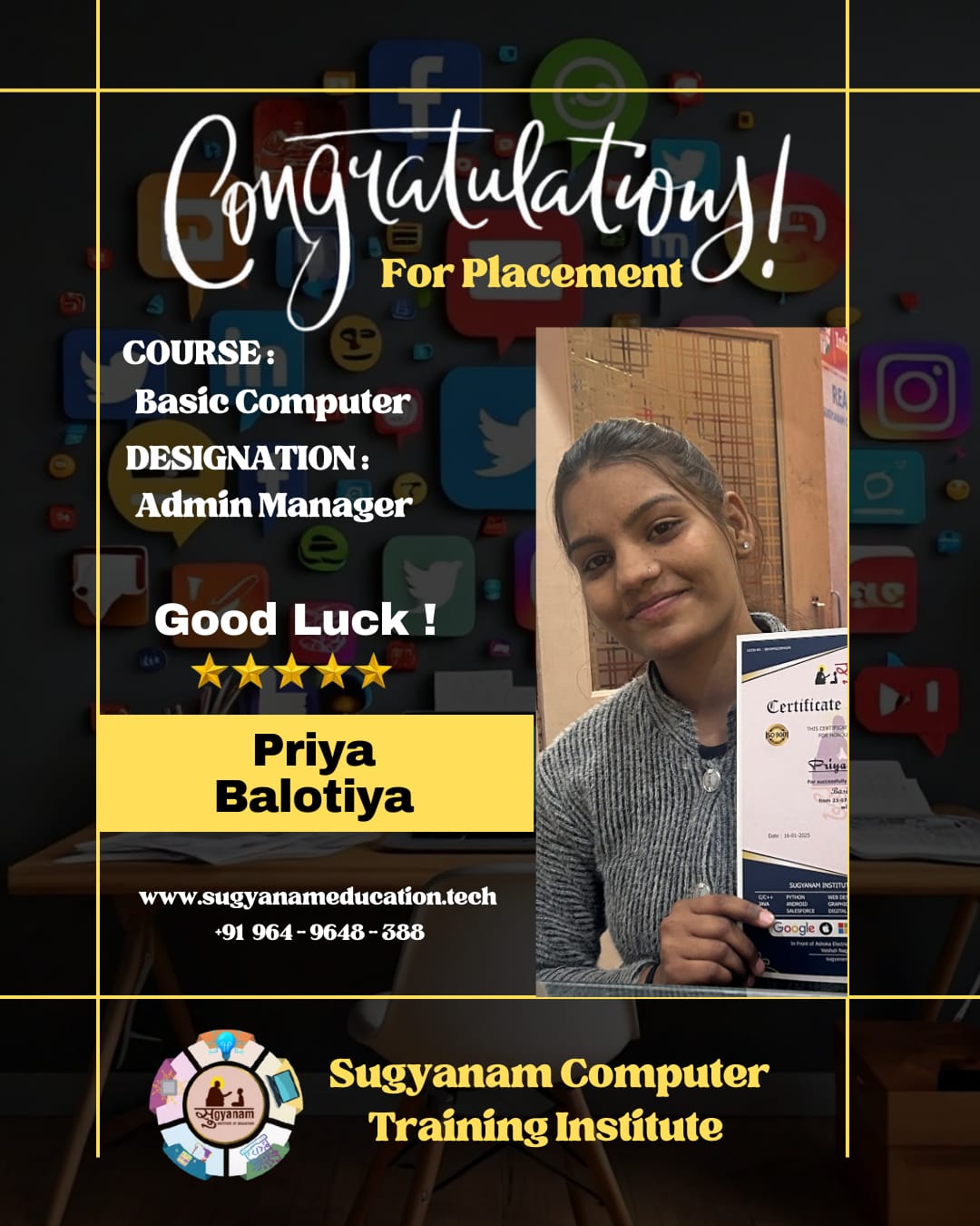 At Sugyanam Institute of Education, we bring the industry to our campus! Our On-Campus Placement Program allows students to meet top recruiters and secure promising career opportunities without leaving the institute.