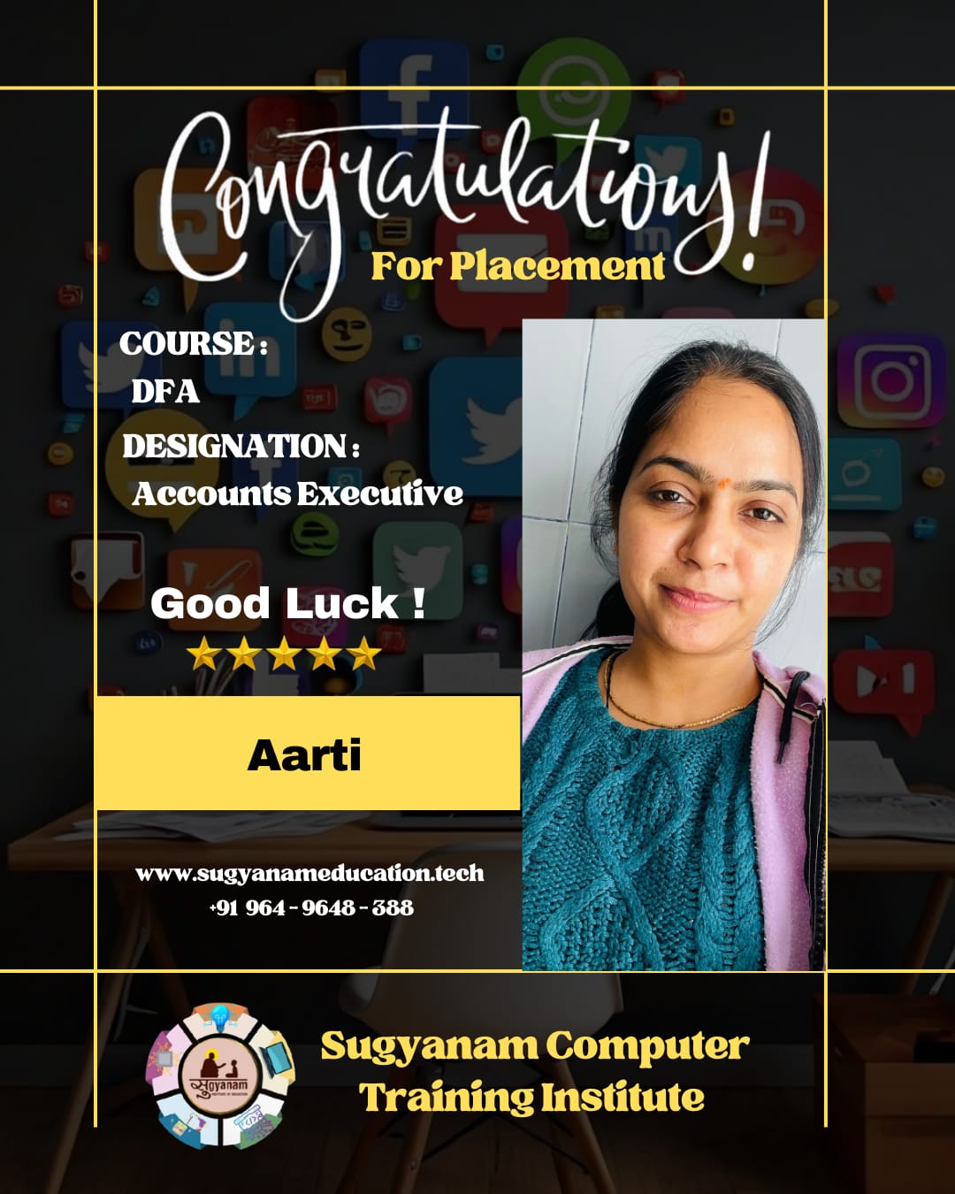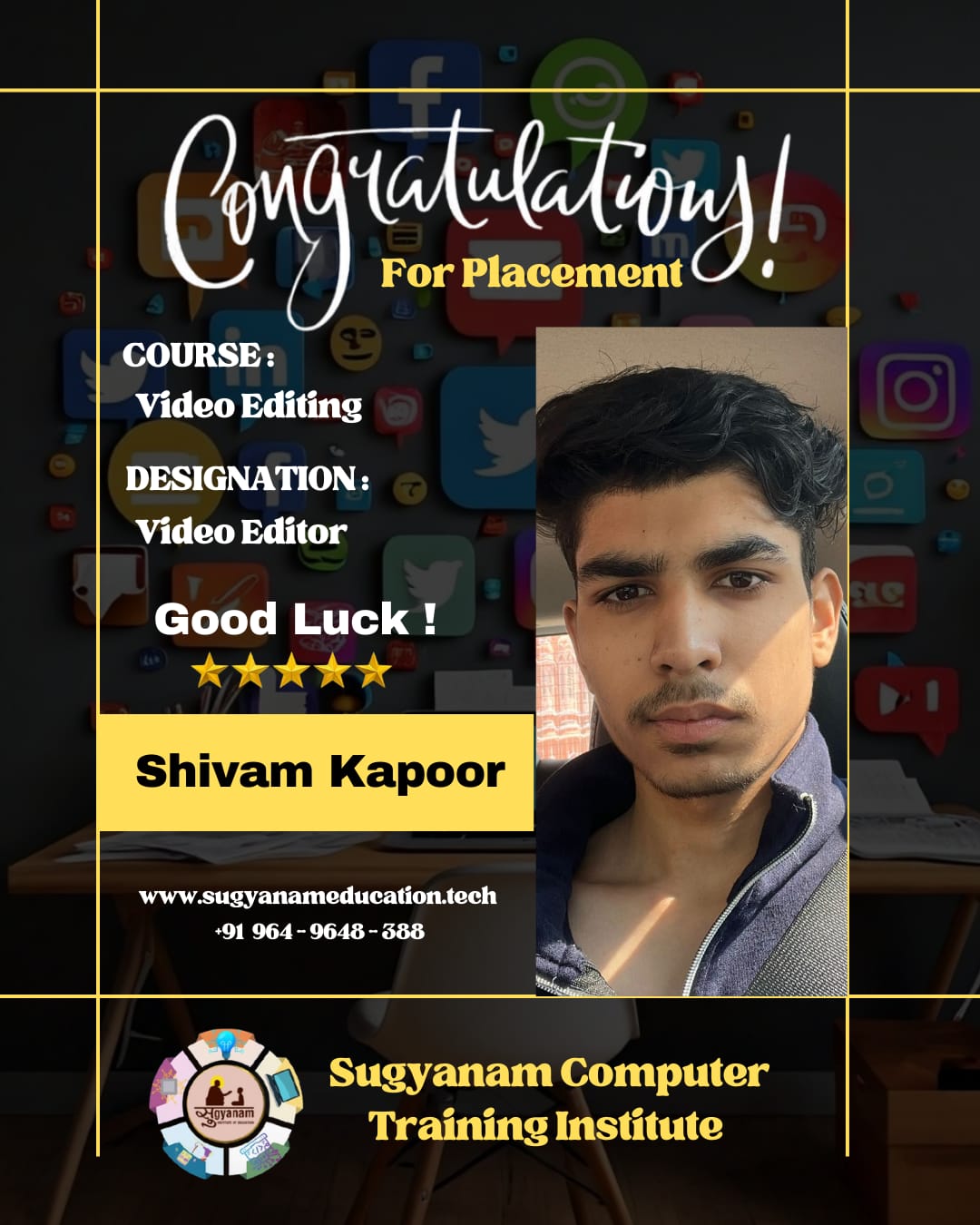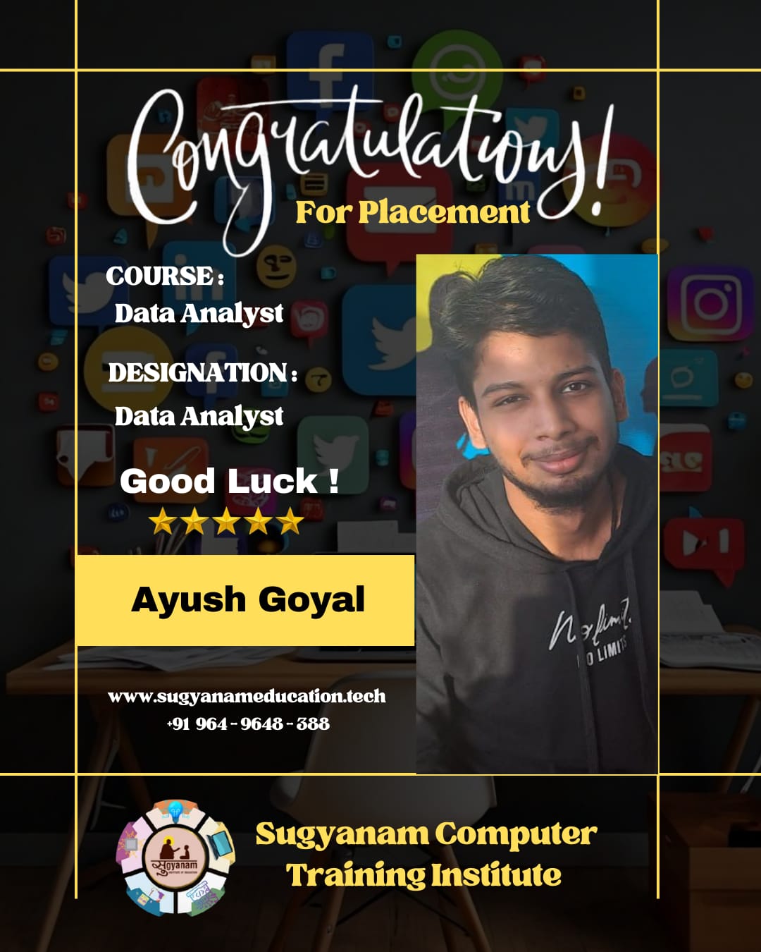 At Sugyanam Institute of Education, we ensure that career opportunities extend beyond the campus through our Off-Campus Placement Program. Students are encouraged and guided to participate in placement drives conducted by companies at external locations, giving them exposure to a broader job market.